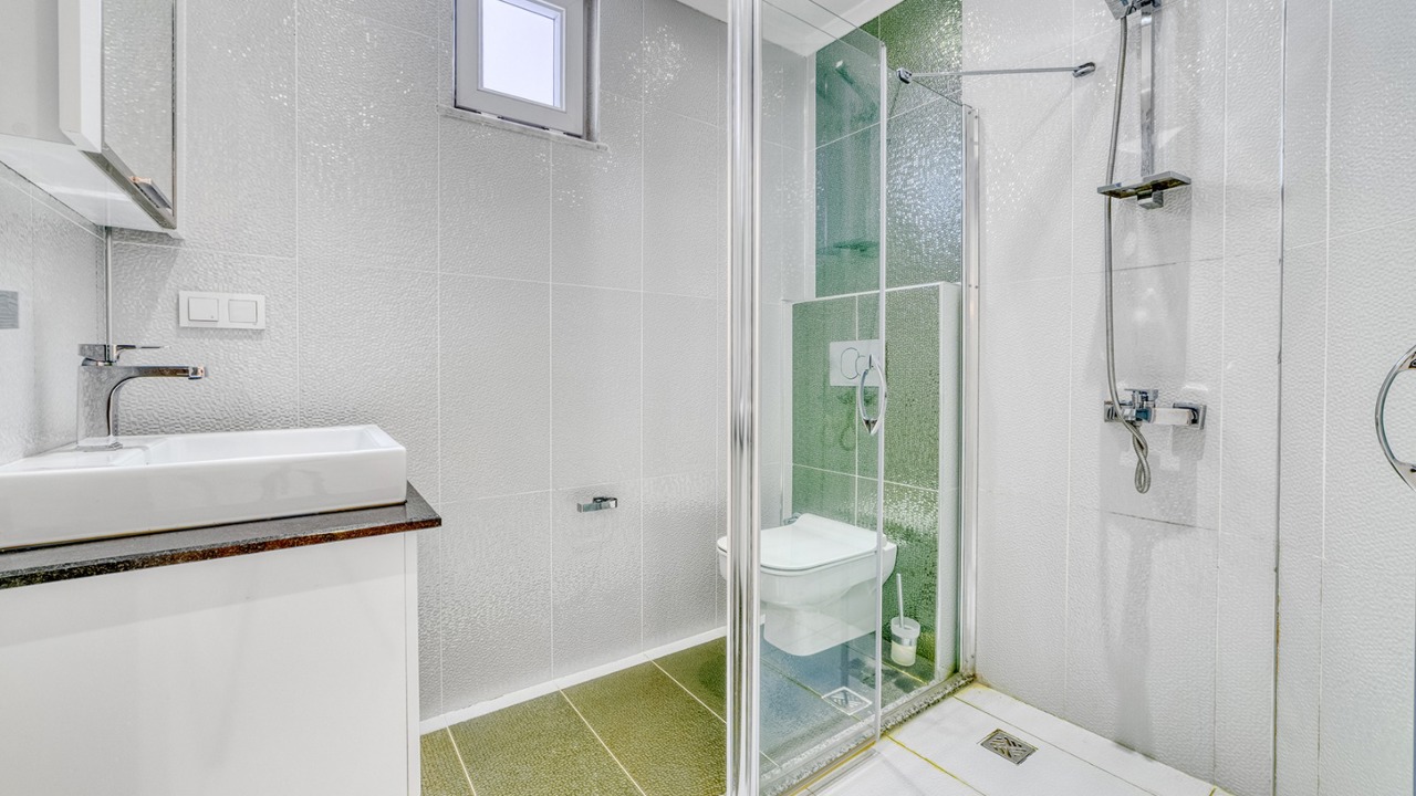 Двухуровневая вилла общей площадью 307 м2 имеет следующую планировку: на первом этаже просторная гостиная с объединенной кухней, одна спальня и санузел с душем. На втором этаже расположены три спальни, два санузла (один с ванной), прачечная комната и два просторных балкона. Вилла также оснащена стальной входной дверью, окнами и балконными дверьми с двойным остеклением ПВХ, напольным покрытием из гранита и LED-подсветкой на потолках в гостиной и спальнях. Особое внимание заслуживает камин, создающий уют домашнего очага, а также подогреваемые полы в ванных комнатах для комфорта в любое время года. Кухня полностью укомплектована современной бытовой техникой, и в каждой комнате установлен кондиционер. Подведено спутниковое телевиденье, интернет и телефония.